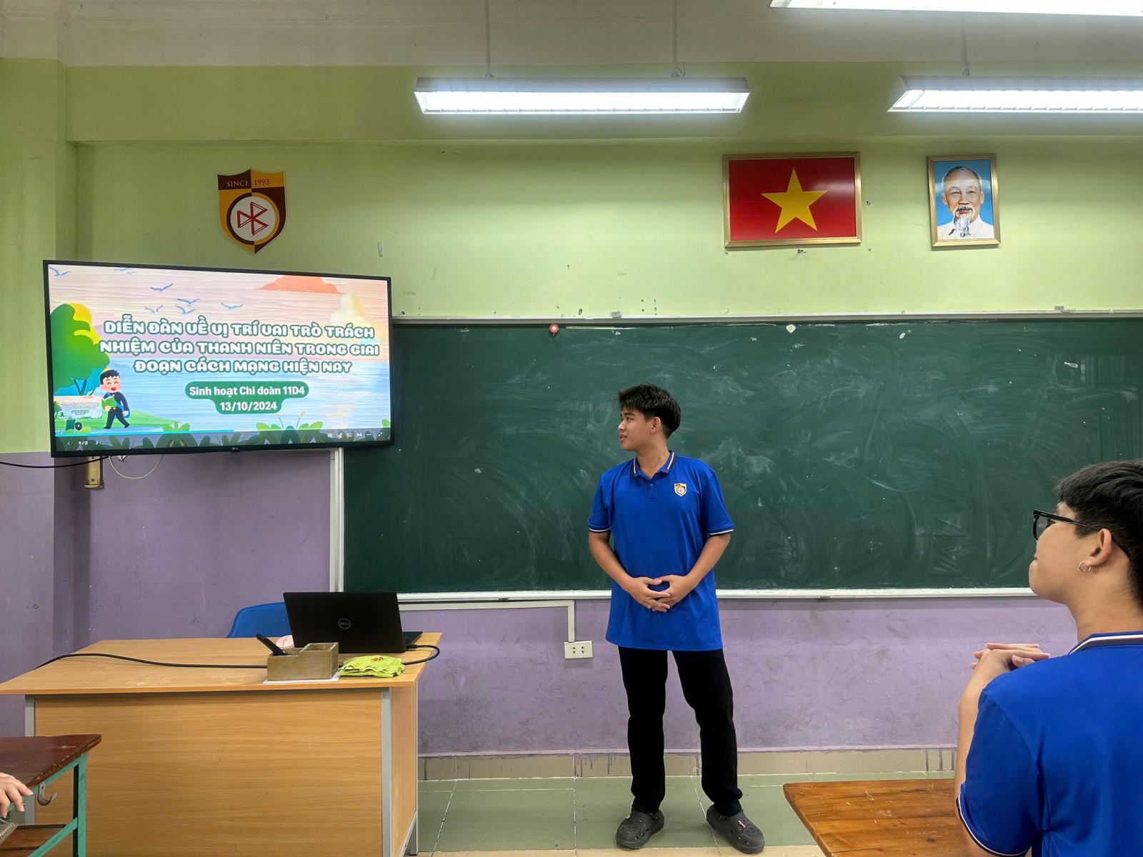 =Thực hiện kế hoạch của Thành Đoàn Hà Nội, trường Nguyễn Bỉnh Khiêm - Cầu Giấy đã xây dựng kế hoạch và tổ chức "Diễn đàn về vị trí vai trò trách nhiệm của thanh niên trong giai đoạn cách mạng hiện nay" trong cấp Chi đoàn và Đoàn trường.