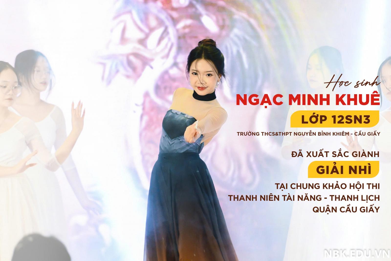 Đặc biệt, học sinh Ngạc Minh Khuê - lớp 12SN3 trường THCS&THPT Nguyễn Bỉnh Khiêm - Cầu Giấy đã xuất sắc giành Giải Nhì tại hội thi. Đây là thành tích đáng tự hào, không chỉ khẳng định tài năng và sự nỗ lực không ngừng của Minh Khuê, mà còn là niềm vinh dự cho trường THCS&THPT Nguyễn Bỉnh Khiêm - Cầu Giấy.