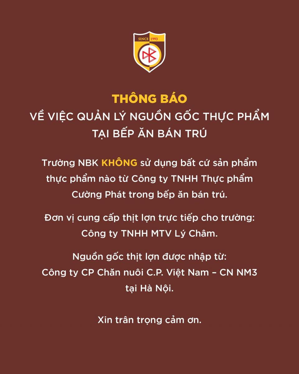 Trường luôn đặt mục tiêu đảm bảo chất lượng và an toàn bữa ăn bán trú cho học sinh lên hàng đầu, đồng thời tăng cường kiểm soát, rà soát nhà cung cấp trong bối cảnh các vụ việc liên quan đến an toàn thực phẩm đang được các cơ quan chức năng xử lý.