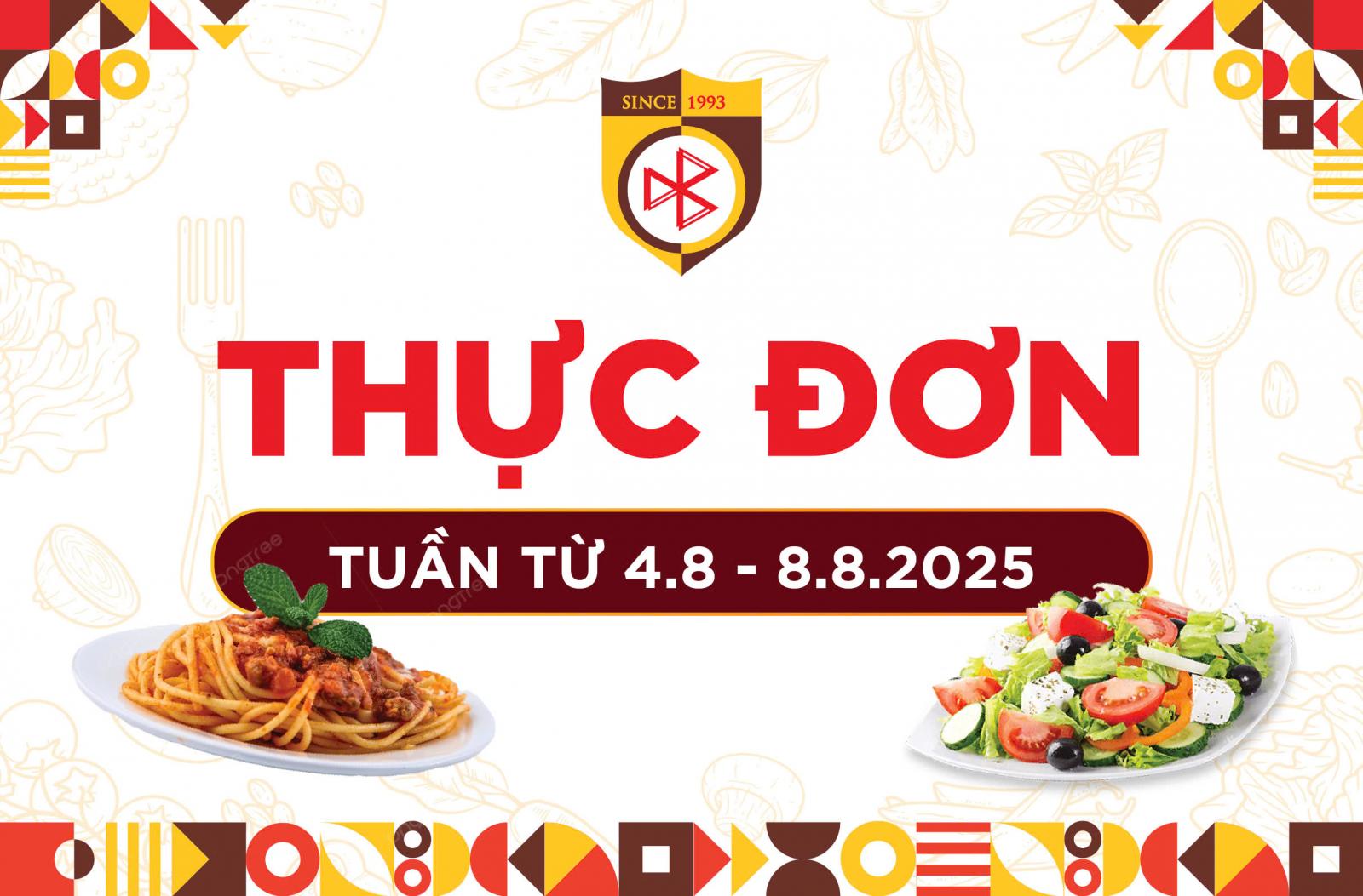 THỰC ĐƠN TIÊU CHUẨN CHO BỮA ĂN BÁN TRÚ (TUẦN TỪ 04/8/2025 ĐẾN 08/08/2025)
