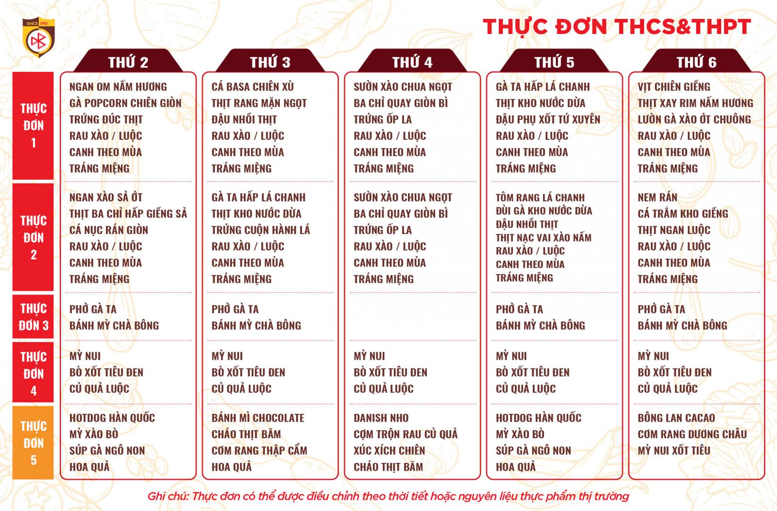 THỰC ĐƠN TIÊU CHUẨN CHO BỮA ĂN BÁN TRÚ (TUẦN TỪ 14/4/2025 ĐẾN 19/4/2025)