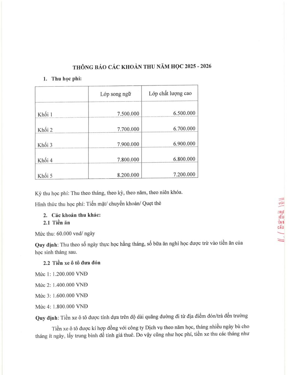 CÔNG KHAI TÀI CHÍNH NĂM HỌC 2025 - 2026